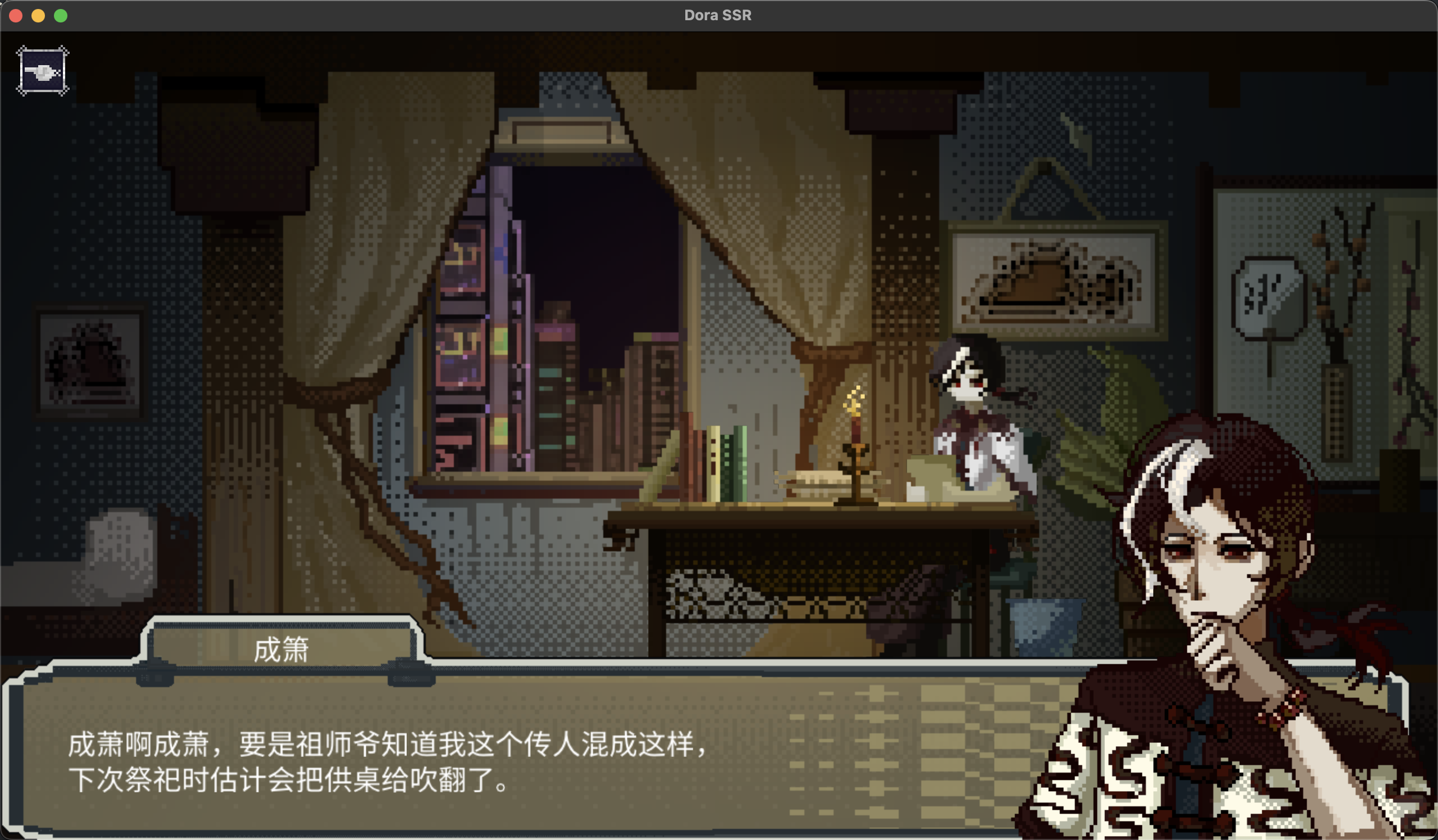 接下来这位也非常厉害——像素大作战团队的主创同学居然是生物专业出身!她完全是凭着一腔热爱报名参赛,硬是自学开源引擎 Dora SSR 的使用,在短时间内完成了一款文字冒险游戏《睁越迷影》,斩获了本次大赛的“最佳叙事奖”。